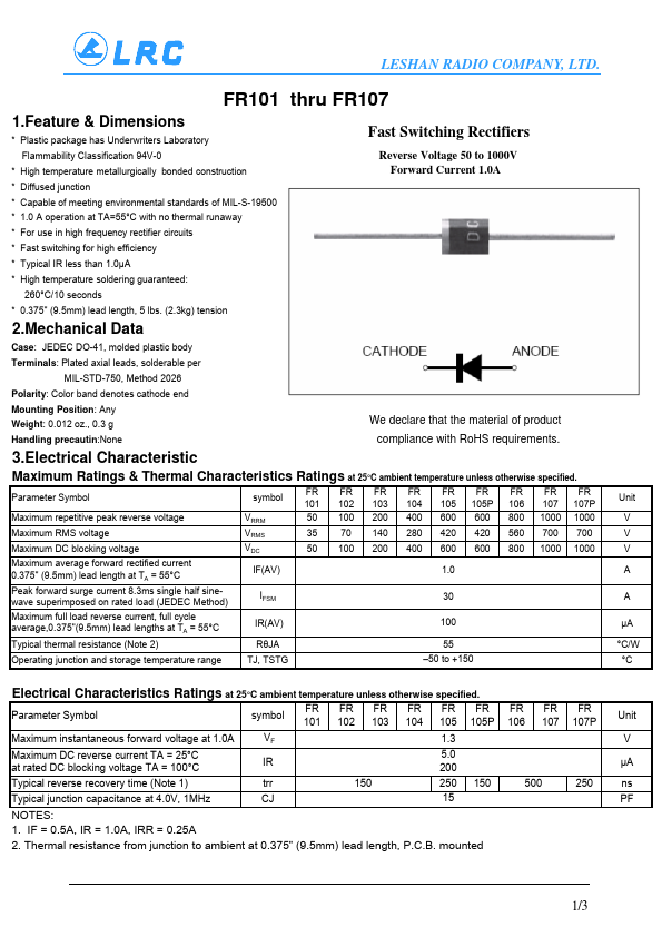 Optimize your electronic projects with these high-performance FR104 Silicon Diodes, engineered for rapid switching and efficient rectification. Known for their Schottky barrier properties, these diodes are ideal for applications requiring fast and reliable performance, such as power supply circuits and high-frequency rectification.