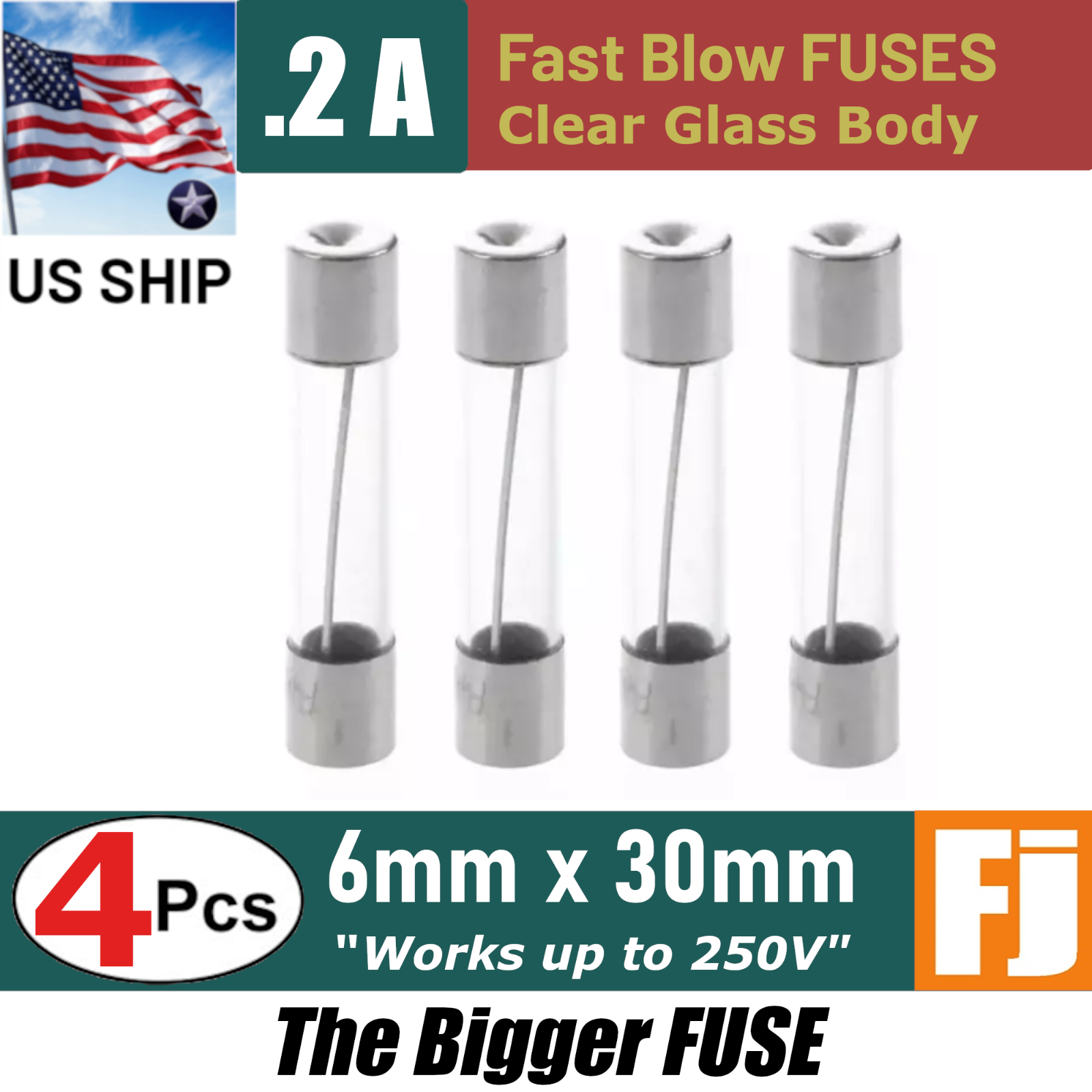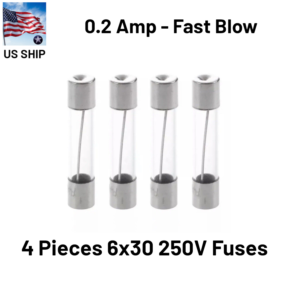 4 Pcs Fast-Blow Fuse 0.2A 250V Glass Fuses 6 x 30 mm (0.2 amp) | US Ship