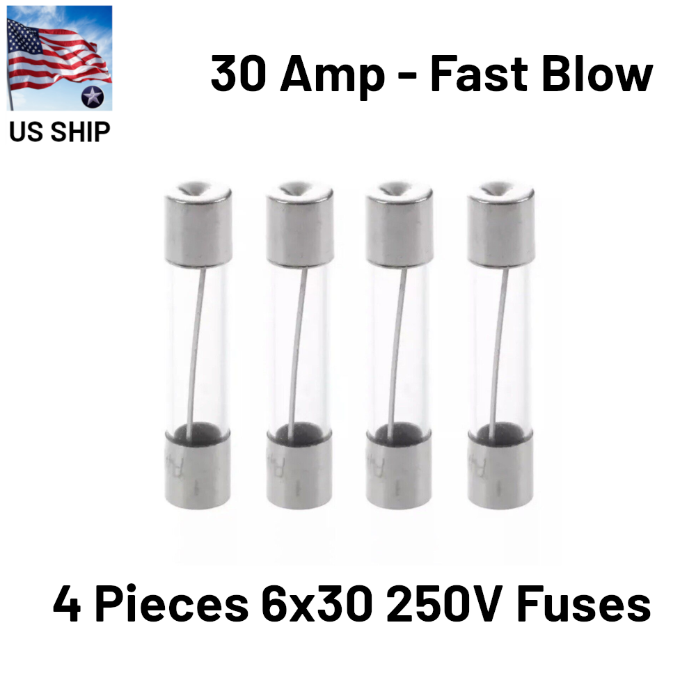 4 Pcs Fast-Blow Fuse 30A 250V Glass Fuses 6 x 30 mm (30 amp) | US Ship