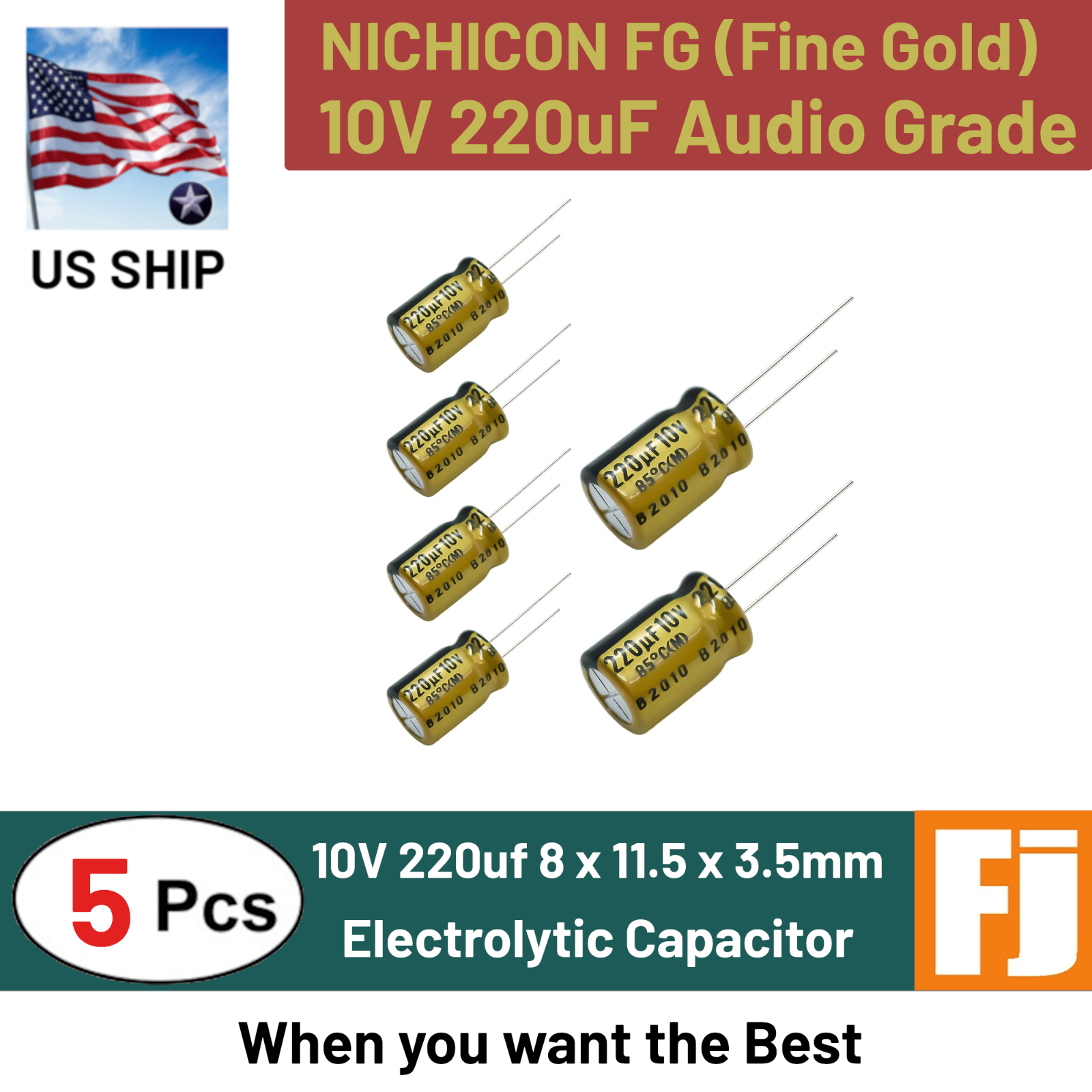 5 Pcs 10V 220uF | Nichicon Fine Gold Audio Grade Electrolytic Caps | US Ship