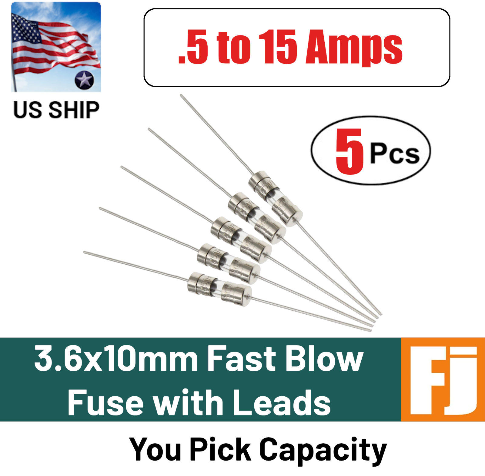 5 Pcs 3.6x10mm Fast Blow Fuse with Leads 250V .5A – 15A | You Pick | US Ship