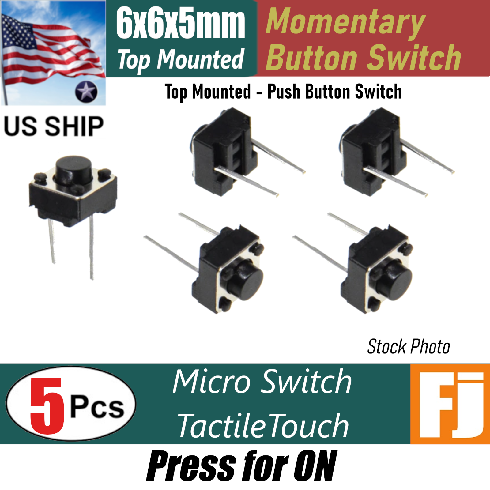 5 Pcs 6x6x5 2 Pin Momentary Tactile Push Button Switch | Top Mounted | US Ship