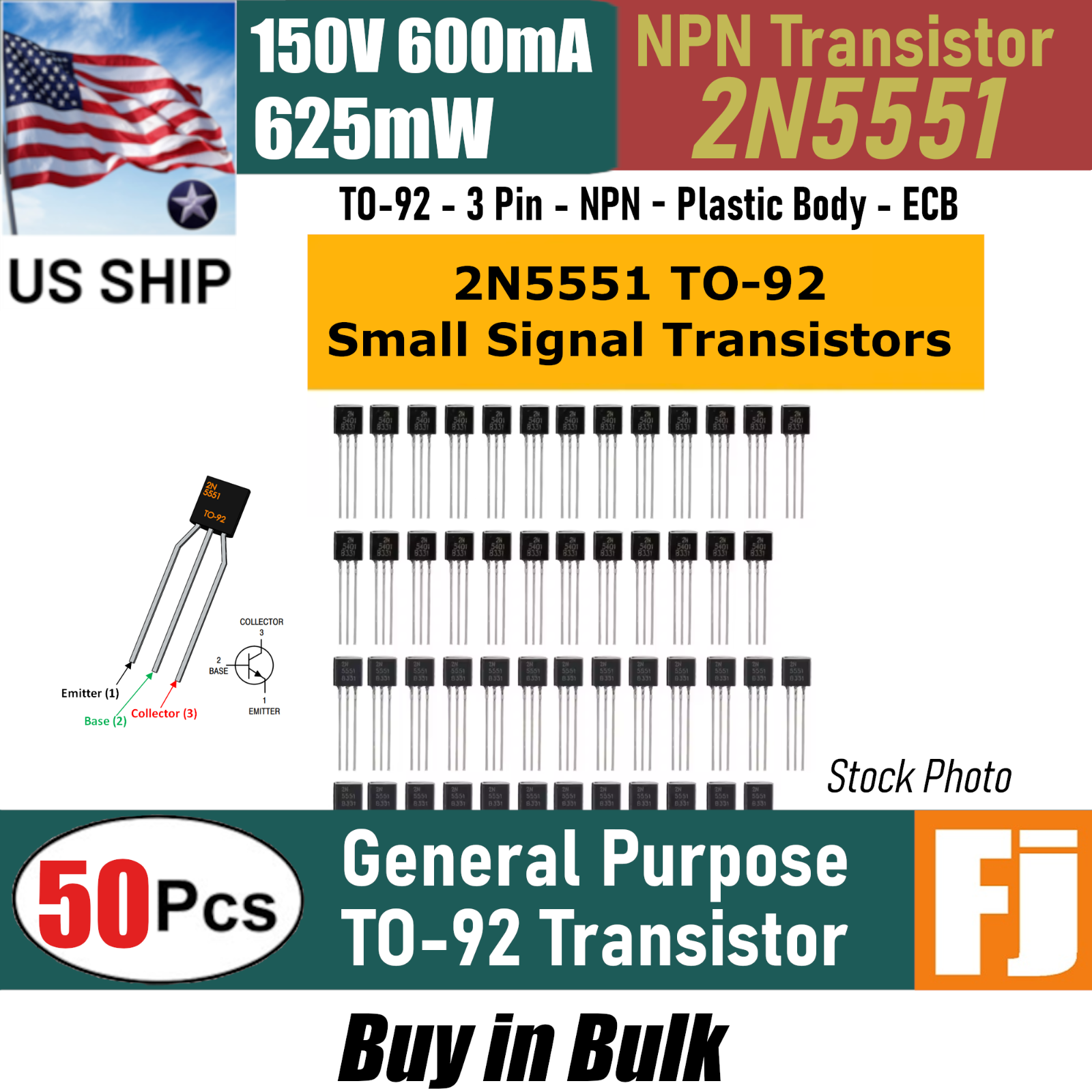 50pcs 2N5551 5551 NPN Transistor TO-92 150V 600mA 625mW | US Ship