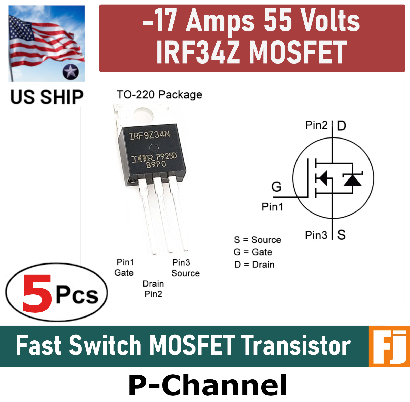 5pcs IRF9Z34N IRF9Z34 Power MOSFET Transistor -17A 55V Fast Switching | US Ship