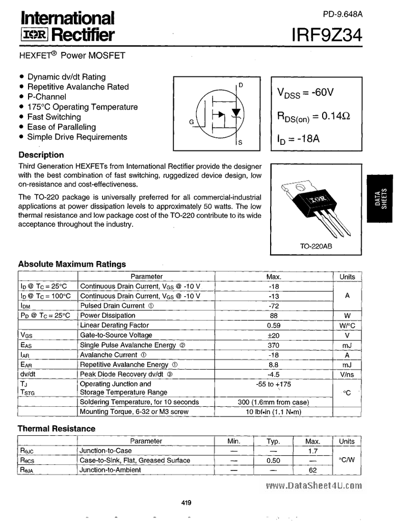 Name:5pcs IRF9Z34N IRF9Z34 Power MOSFET Transistor