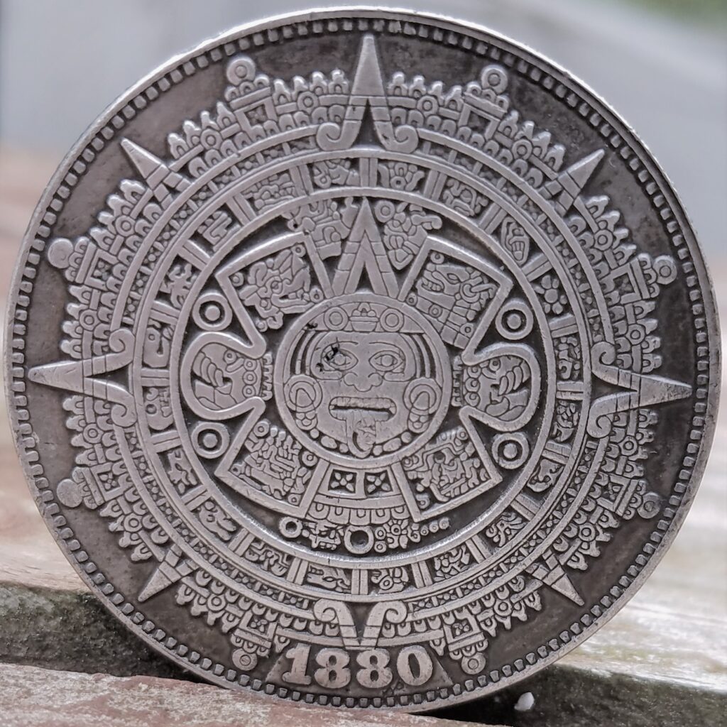 Be the first to review “Aztec Calendar Art Coin Replica Morgan Silver Dollar New Orleans Mint Mark 1.5″ (38mm) Collectible with Display Stand Active”