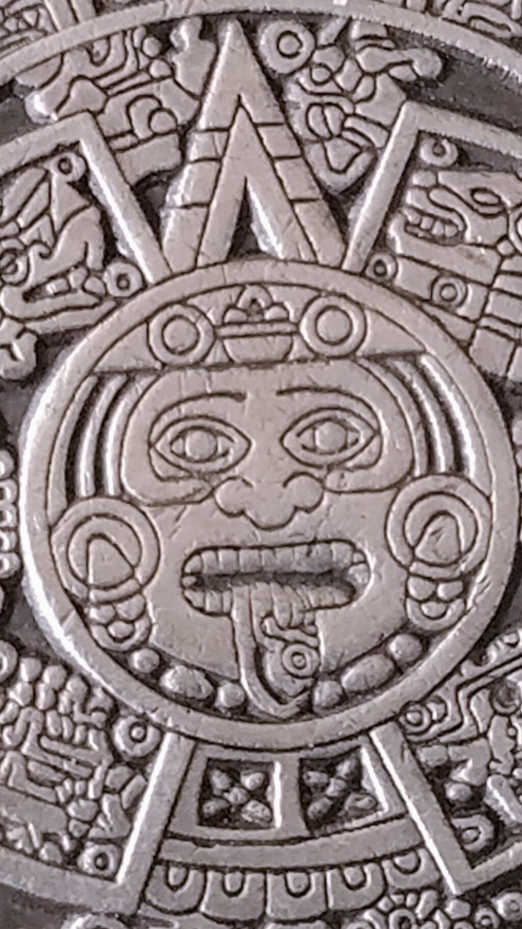 • Coin is 1.50″ Diameter and 3/32″ Thickness (About Two Quarters Thick) and Weighs .9 Ounces (27 Grams). On the rear is an American Eagle clutching an olive branch and three arrows. The front side features the classical Aztec Calendar.