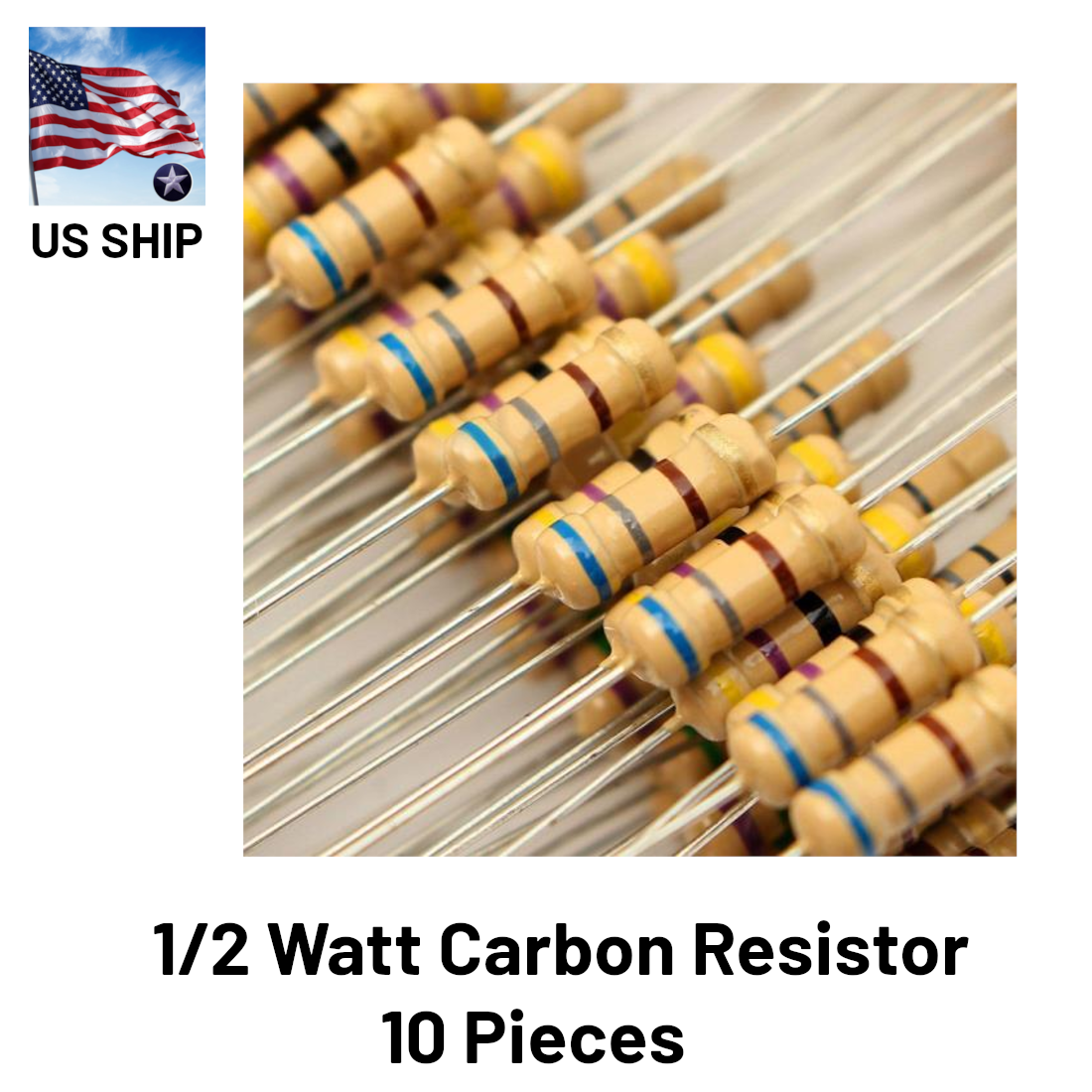 Carbon Film Resistor 1/2W 0.5 Watt 5% Tolerance | 10 Pieces | US Shipping